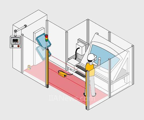 激光掃描儀:激光光束掃描需要監(jiān)控的區(qū)域,如果光束被異物反射,掃描儀檢測(cè)到異常,將中斷危險(xiǎn)的動(dòng)作。通常激光掃描儀只能覆蓋比較小的區(qū)域,如果保護(hù)區(qū)域比較大,可增加第二臺(tái)激光掃描儀以水平或者一定的角度安裝,防止對(duì)第一臺(tái)掃描儀的后方入侵。