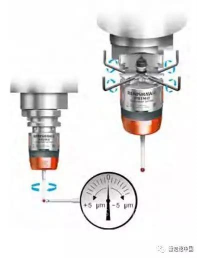 b.為后面的步驟“測(cè)針對(duì)心調(diào)整”做好安裝位置上的準(zhǔn)備,即用肉眼觀察測(cè)頭與刀柄間的位置,粗調(diào)測(cè)頭相對(duì)于刀柄的位置,使得測(cè)頭外圓與刀柄外圓相對(duì)處于盡量同心的狀態(tài),這樣才不至于在“測(cè)針對(duì)心調(diào)整”時(shí),測(cè)針偏心太大而出現(xiàn)無法壓到千分表的情況;