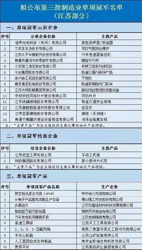 博眾入圍江蘇省第三批制造業(yè)“單項(xiàng)冠軍產(chǎn)品”名單