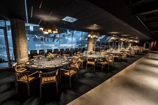 由玻璃幕墻構(gòu)成的貴賓套房環(huán)繞于主廳周圍可供公司和個人租用。