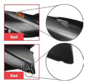 上圖:刀口處有破裂下圖:頂端有較小的破裂