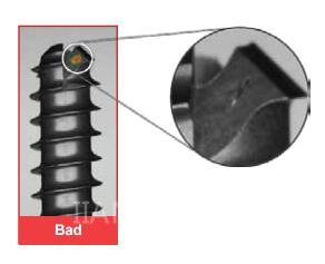 在第二個例子中,ViDi紅色檢查工具學習完整的醫(yī)用螺釘模型。同樣地,記錄過程中,螺釘會圍繞垂直軸發(fā)生旋轉(zhuǎn)。該模型基于一組隨機選擇的合格元件樣本圖像組合創(chuàng)建。它包含可接受的表面紋理變化以及復雜的頂端和自鉆式底切。