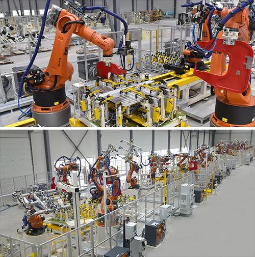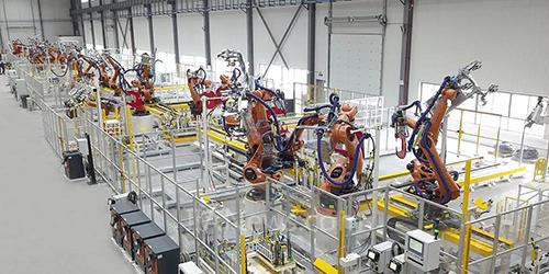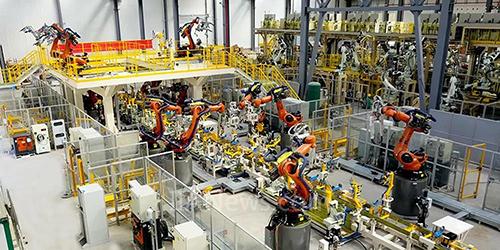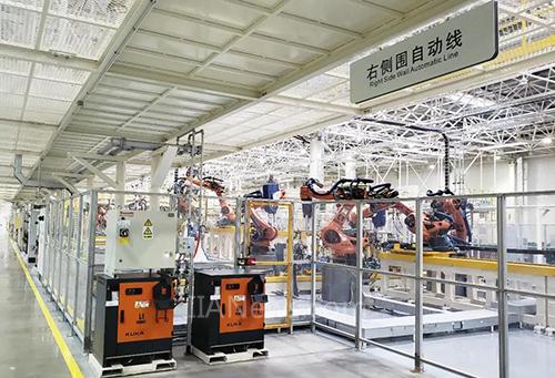地板總成線初期投入機器人近20臺,包含搬運、點焊等功能,可實現(xiàn)人機混合裝件,全自動化焊接,通過預(yù)留追加機器人,可實現(xiàn)產(chǎn)能從5萬臺到10萬臺的提升,二期再導(dǎo)入10臺機器人,年產(chǎn)能將達到10萬臺。