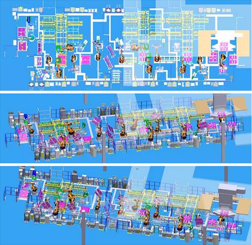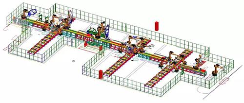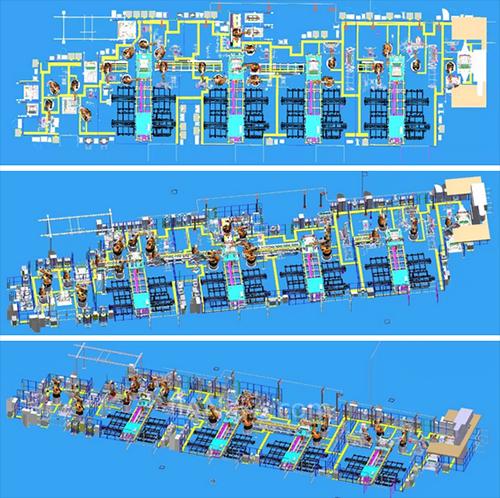 圖、瑞松為廣汽新能源智能生態(tài)工廠提供的鋼鋁車身柔性智能焊裝車間右側(cè)圍自動線