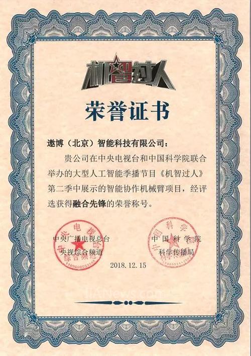 遨博協(xié)作機(jī)器人團(tuán)隊為解決勞動力缺口助力中國智能制造,推出更適合中國市場的協(xié)作機(jī)器人,在超級人類檢驗團(tuán)和中國科學(xué)院專家的層層檢驗中獲得一致認(rèn)可,并榮獲“融合先鋒”稱號。