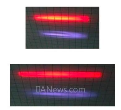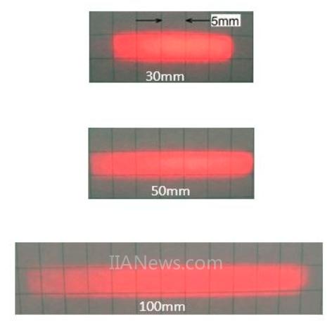 左邊為小光斑產(chǎn)品,右邊為長(zhǎng)光斑產(chǎn)品。它們的檢測(cè)距離都是100mm。