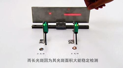 相對(duì)于小光斑或普通光斑來(lái)說(shuō),長(zhǎng)光斑產(chǎn)品有特殊的優(yōu)勢(shì)。比如在檢測(cè)高亮目標(biāo)物時(shí),小光斑很容易受安裝角度的影響,輸出極不穩(wěn)定;而長(zhǎng)光斑因?yàn)槠涔獍呙娣e大能穩(wěn)定檢測(cè)。