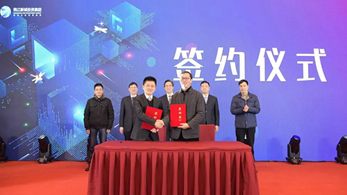 海康威視高級副總裁兼??禉C器人總裁賈永華與錢投集團副總經理郭魯軍代表雙方簽署合作意向書
