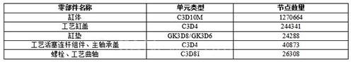 表 1. 各零部件單元類型與節(jié)點數(shù)量