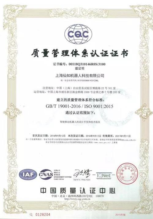 近期,仙知機器人通過ISO9001質(zhì)量管理體系認證和ISO14001環(huán)境管理體系認證!這標志著仙知已建立起符合ISO9001認證標準的質(zhì)量管理體系和ISO14001認證標準的環(huán)境管理體系,產(chǎn)品品質(zhì)達到了國際化流程標準。