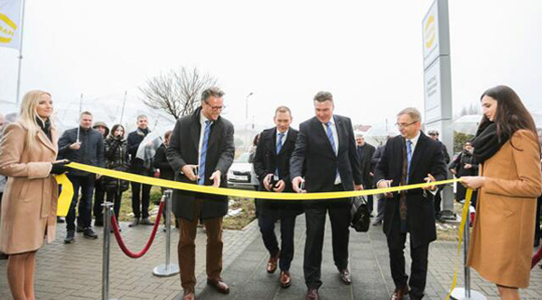 圖片說明(圖片1):在(從左至右)首席執(zhí)行官兼董事長洪斐立先生、運(yùn)營總監(jiān)安德烈亞斯·康拉德、浩亭定制化解決方案股份有限公司(簡稱為“HCS”)董事總經(jīng)理克里斯蒂安·舒馬赫以及浩亭波蘭公司董事總經(jīng)理馬里烏什·美特杰茲克的見證下,該工廠正式開業(yè)。