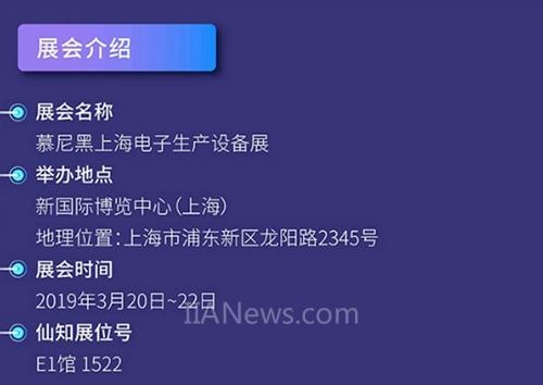 2019年3月20日-22日,為期三天的2019慕尼黑上海電子生產(chǎn)設(shè)備展將在上海新國際博覽中心舉行。