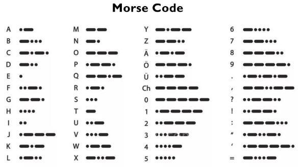 經(jīng)過亨利院長的點(diǎn)撥,莫爾斯逐步掌握了電磁學(xué)的知識,莫爾斯還向其他人虛心求教,終于制作出了電報(bào)機(jī),還發(fā)明了著名的莫爾斯電碼,用點(diǎn)、橫和時間間隔代表26個英文字母和10個阿拉伯?dāng)?shù)字。一點(diǎn)就是繼電器的線圈開關(guān)閉合較短時間,上面的燈泡亮的時間也很短,一橫就是繼電器的線圈開關(guān)閉合較長的時間,上面的燈泡亮較長的時間,短和長是1:3的比例。然后在各個字母和單詞之間有固定的時間停頓,也就是繼電器不帶電,這樣就可以通過燈泡的亮和滅,即回路的通和斷,加上通和斷的時間,來表示一段報(bào)文了。