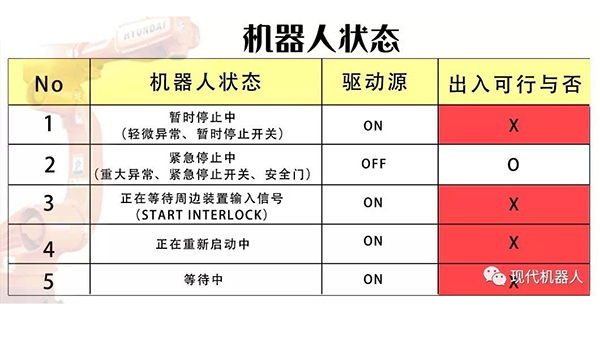 機器人停止后不要擅自接近設(shè)備、有時誤判斷為設(shè)備已經(jīng)停止而被卷入突然運轉(zhuǎn)的機器人、導(dǎo)致重大事故。機器人在以下情況也會處于停止?fàn)顟B(tài)。