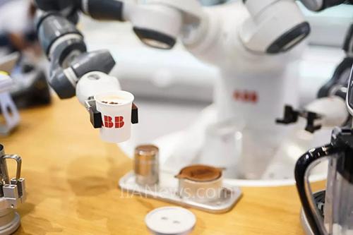 通過(guò)引導(dǎo)式編程,YuMi捕捉、模仿并記下咖啡師的動(dòng)作;RobotStudio?軟件對(duì)YuMi的動(dòng)作進(jìn)行微調(diào);YuMi完成取咖啡杯和牛奶杯、將牛奶倒入咖啡、拉花并遞給觀眾等一系列動(dòng)作。