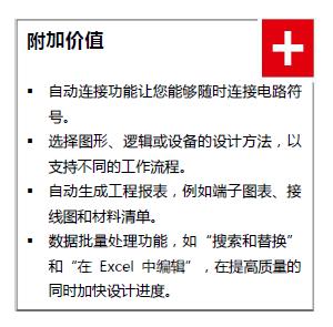 ● 自動(dòng)生成工程報(bào)表,例如端子圖表、接線圖和材料清單。
