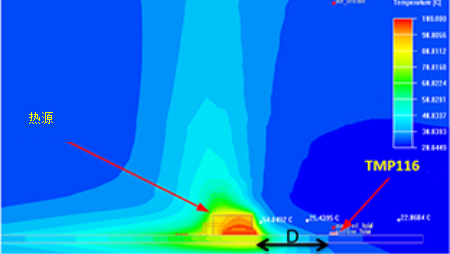 圖3:使用IC溫度傳感器和功率電阻器對(duì)板進(jìn)行熱捕獲; 距離(D)為15.24毫米