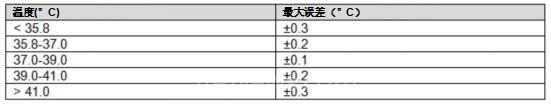 美國(guó)材料與試驗(yàn)協(xié)會(huì)(ASTM)規(guī)定了電子患者體溫計(jì)的精度要求,如表1所示。在最嚴(yán)格的范圍內(nèi),這些標(biāo)準(zhǔn)允許最多±0.1oC的誤差,以確?;颊叩捏w溫的準(zhǔn)確測(cè)量。