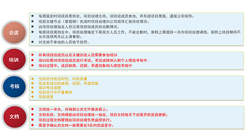 無規(guī)矩不成方圓,一個(gè)項(xiàng)目的完美上新是要經(jīng)過方方面面的努力的,此次優(yōu)必選PLM項(xiàng)目從會議紀(jì)要、培訓(xùn)、考核、文檔管理等方面嚴(yán)格管理與要求。