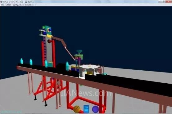 平臺(tái)主要實(shí)現(xiàn)模擬生產(chǎn)線實(shí)驗(yàn)裝置的數(shù)字化模擬功能。該平臺(tái)通過在PC機(jī)上構(gòu)建真實(shí)設(shè)備的3D模型,建立虛擬平臺(tái)和PLC之間的通訊,實(shí)現(xiàn)PLC的真實(shí)I/O對(duì)于虛擬對(duì)象的控制,將虛擬平臺(tái)的應(yīng)用作為實(shí)際現(xiàn)場(chǎng)設(shè)計(jì)、調(diào)試的前期準(zhǔn)備,很大程度的提高了實(shí)際實(shí)驗(yàn)設(shè)備的利用效率。