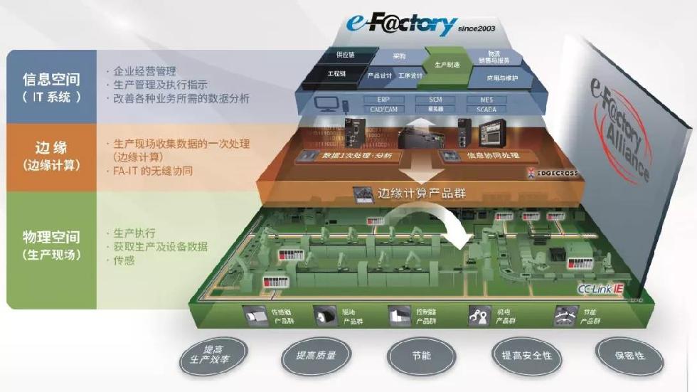 e-F@ctory智能制造解決方案立足生產(chǎn)現(xiàn)場(chǎng),充分利用“人、機(jī)器、和IT協(xié)同”將FA和IT融合,有效降低供應(yīng)鏈和工程鏈的總成本。在加工機(jī)產(chǎn)品中,e-F@ctory通過(guò)數(shù)據(jù)采集、傳輸、分析、反饋的形式提高設(shè)備的使用效率,通過(guò)對(duì)FA和IT融合提高整廠的數(shù)字化水平,通過(guò)內(nèi)外資源整合幫助企業(yè)打造智能制造生態(tài)系統(tǒng)。
