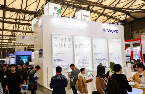 在裝配應(yīng)用中制造商使用的點膠材料類型包括粘合劑、密封劑、涂層、底漆、潤滑劑、鎖線器和導熱間隙填充物,通??煞譃榄h(huán)氧樹脂體系、硅膠材料體系、聚胺脂材料體系、丙稀酸樹脂體等。據(jù)了解,WEVO現(xiàn)場展示的環(huán)氧樹脂膠溫度使用范圍可達-40℃至180℃,與金屬表面有很好的粘接性,耐高低溫循環(huán),可操作時間長,符合UL 94 V-0 標準,硬度范圍可達Shore-D 40-90,在高溫下也保有穩(wěn)定的電性能,并且具有良好的導熱性。