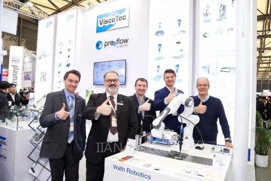 此外,值得一提的是今年ViscoTec(preeflow eco-PEN, eco-SPRAY) 和Voith 福伊特 (Voith Robotics) 強強聯(lián)手展示產(chǎn)品,兩者合二為一。完美發(fā)揮高效技能,使觀眾嘆為觀止,駐足觀看。全新preeflow eco-SPRAY精密螺桿計量噴膠機旨在迅速均勻地涂敷Panacol的一種用于做掩膜和保形涂層的膠水。這項新技術(shù)可實現(xiàn)完美效果,無論噴涂低粘度還是高粘度UV膠均可提供優(yōu)異的邊緣清晰度,現(xiàn)場觀眾親身了解到了如何實現(xiàn)點膠以及復(fù)雜的表面涂覆,有效提高品質(zhì)和產(chǎn)量并能提供更高的可靠性。