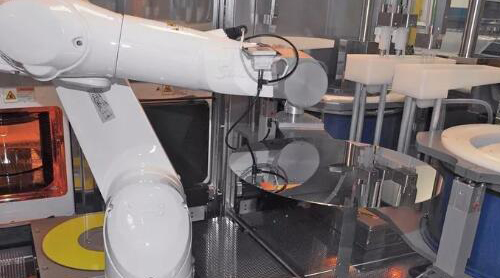 在拾取和嵌入晶圓時,機器人的精準(zhǔn)運動軌跡也是一大優(yōu)勢。TX60L能以出色的可靠性搬運昂貴晶圓而無任何輕微顫動,也未曾發(fā)生晶圓破碎問題。系統(tǒng)的周期時間視實際任務(wù)而定,模塊加工時間對某些工藝來說是限制因素,但對于其他任務(wù)來說,機器人自身的取放周期時間才是決定性因素。在兩種情況下,系統(tǒng)都受益于機器人的超快速度的周期時間。即使是在較大加速度下,史陶比爾機器人仍能保持精準(zhǔn)運行,從而安全避免晶圓損壞。