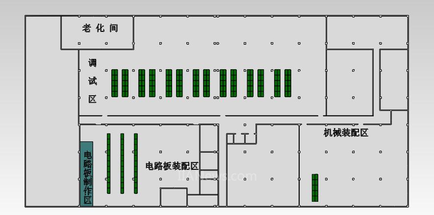 根據(jù)客戶現(xiàn)場(chǎng)情況,共有四個(gè)生產(chǎn)區(qū)域,包括機(jī)械裝配區(qū)(1個(gè)工位),電路板裝配區(qū)(2個(gè)工位),調(diào)試區(qū)(8個(gè)工位),老化間(1個(gè)工位) ,共有11個(gè)工位。