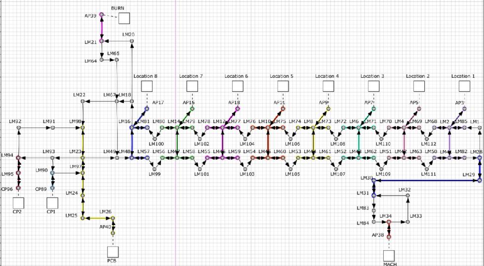 所有的工位之間都可實(shí)現(xiàn)雙向運(yùn)輸。