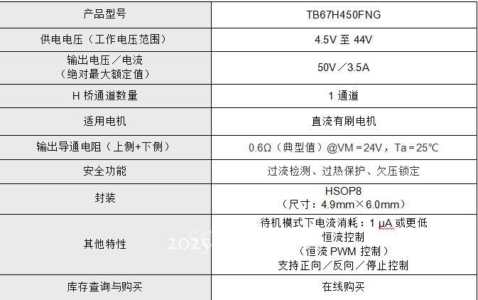 新IC能在4.5V至44V的供電電壓下驅(qū)動有刷電機。它支持多種類型的應用,包括USB供電、電池供電和工業(yè)12至36V供電設備。此外,TB67H450FNG還具備3.5A電流驅(qū)動能力,可用于真空掃地機器人、冰箱和其他家電的電機驅(qū)動,以及辦公設備、ATM機等多種應用。