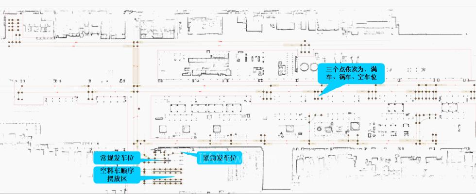 難點(diǎn):車間面的巨大、工位分散;運(yùn)輸物料種類多、需求數(shù)量多。