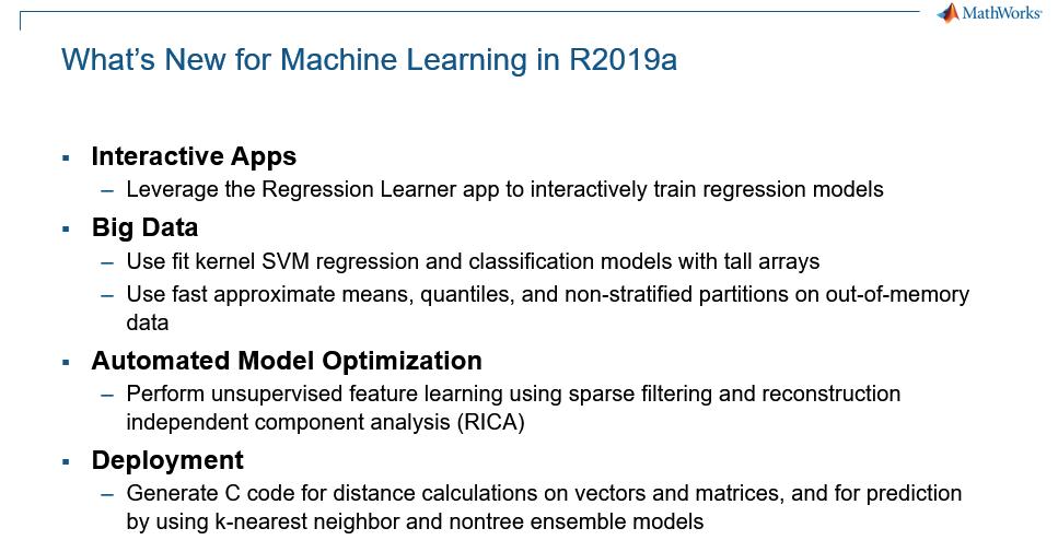 深度學(xué)習(xí)、機(jī)器學(xué)習(xí)、增強(qiáng)學(xué)習(xí)是MATLAB歸納和引入的三種算法,針對這三段趨勢對應(yīng)的不同的挑戰(zhàn),MathWorks相對采用了不同的策略。機(jī)器學(xué)習(xí)會涉及到很多不同的方法和工具,客戶可能會很熟悉每一個算法,但最大的困難是如何快速選擇合適的算法,或合適的技術(shù)。MATLAB工具可以輔助開發(fā)者快速地選擇最合適的應(yīng)用和算法。