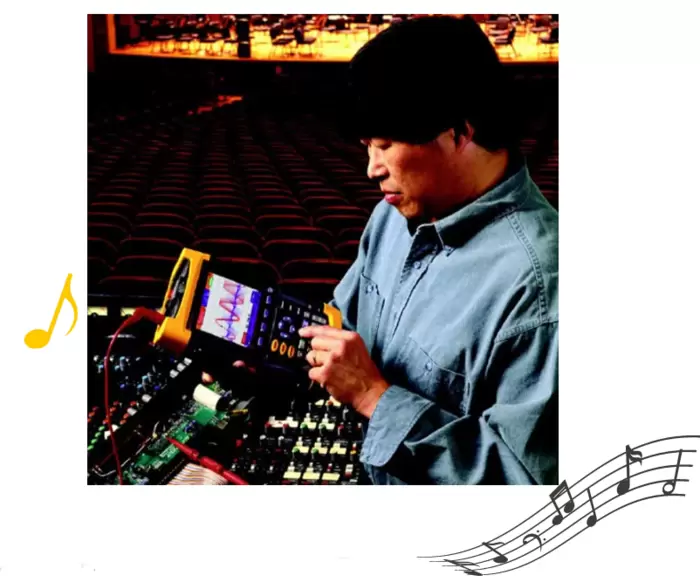 這就是幕后樂(lè)手音響師 Rick Chinn 和他的樂(lè)器——福祿克手持式示波器。