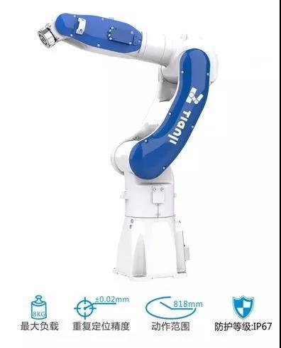 當然,還有一點必須強調(diào),許多企業(yè)會忽略掉工業(yè)機器人的防護等級問題,如果機器人使用的環(huán)境有塵或者有水會對機器人的運行產(chǎn)生影響,那么就必須特別關(guān)注機器人的防護等級,畢竟不同機器人對各種環(huán)境的適應(yīng)性是有區(qū)別的。在此之前發(fā)布的天機明星產(chǎn)品TR8,除了速度在國際較高水平,IP防護等級更是達到67,無懼高溫、粉塵、潮濕等惡劣環(huán)境。