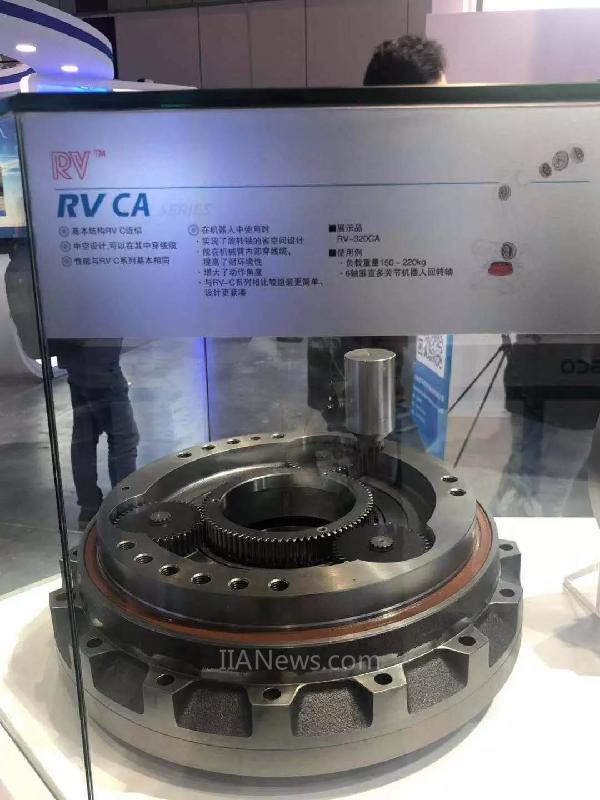 這次展會中所展示的RV-320CA,在機(jī)器人負(fù)載重量需求在150~220kg時(shí),可以用于六關(guān)節(jié)機(jī)器人的第一軸--回旋軸。使用時(shí)有如下所示的優(yōu)勢和特點(diǎn):1.實(shí)現(xiàn)了旋轉(zhuǎn)軸的省空間設(shè)計(jì)。2.能在機(jī)械內(nèi)部穿線纜,提高了耐環(huán)境性。3.增大了動作角度。4.與RV-C系列相比較組裝更簡單,設(shè)計(jì)更緊湊。