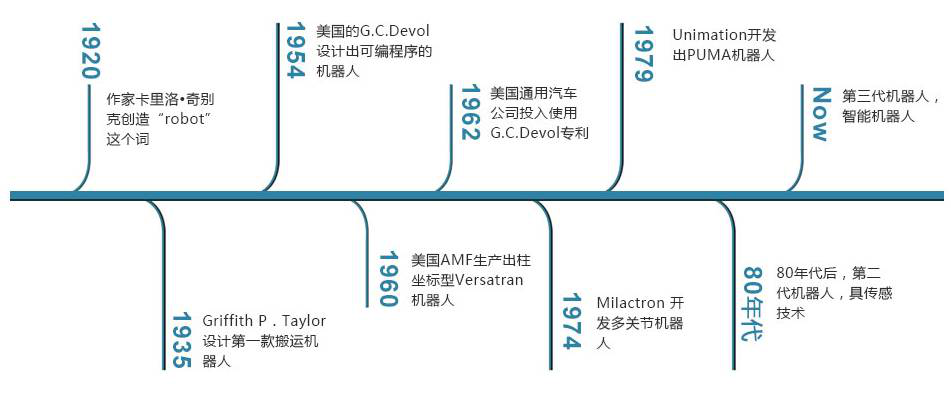 從1920年,"Robot"這個(gè)詞被捷克劇作家創(chuàng)造出來,到現(xiàn)在機(jī)器人已經(jīng)發(fā)展了近百年,從最初的單純用于搬運(yùn)的工業(yè)機(jī)器人,到第二代具有視覺傳感器以及信息處理技術(shù)的工業(yè)機(jī)器人,再到目前正在研究的"智能機(jī)器人",工業(yè)機(jī)器人的發(fā)展及應(yīng)用日新月異。