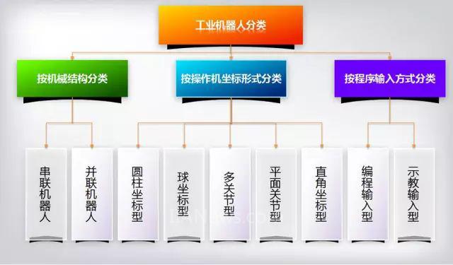 工業(yè)機(jī)器人按不同的方法可分下述類型:具體看下圖