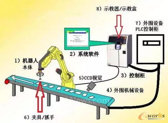 工業(yè)機(jī)器人由3大部分6個(gè)子系統(tǒng)組成。3大部分是機(jī)械部分、傳感部分和控制部分。6個(gè)子系統(tǒng)可分為機(jī)械結(jié)構(gòu)系統(tǒng)、驅(qū)動(dòng)系統(tǒng)、感知系統(tǒng)、機(jī)器人-環(huán)境交互系統(tǒng)、人機(jī)交互系統(tǒng)和控制系統(tǒng)。