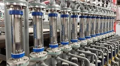 在這里,生產(chǎn)商需要測(cè)量以僅40mbarg/0.58psig的壓力流入反應(yīng)爐的連續(xù)氫氣流量。由于只需通過(guò)可視浮子高度就地顯示流量,所以選擇了帶玻璃管的可變面積流量計(jì)VA 40作為一種簡(jiǎn)單、可靠、經(jīng)濟(jì)的測(cè)量方案。盡管VA 40的可用選項(xiàng)包括限位開(kāi)關(guān)或4…20mA信號(hào)輸出,但14個(gè)流量計(jì)氫氣供應(yīng)管線安裝為純機(jī)械流量計(jì),無(wú)需輔助電源。