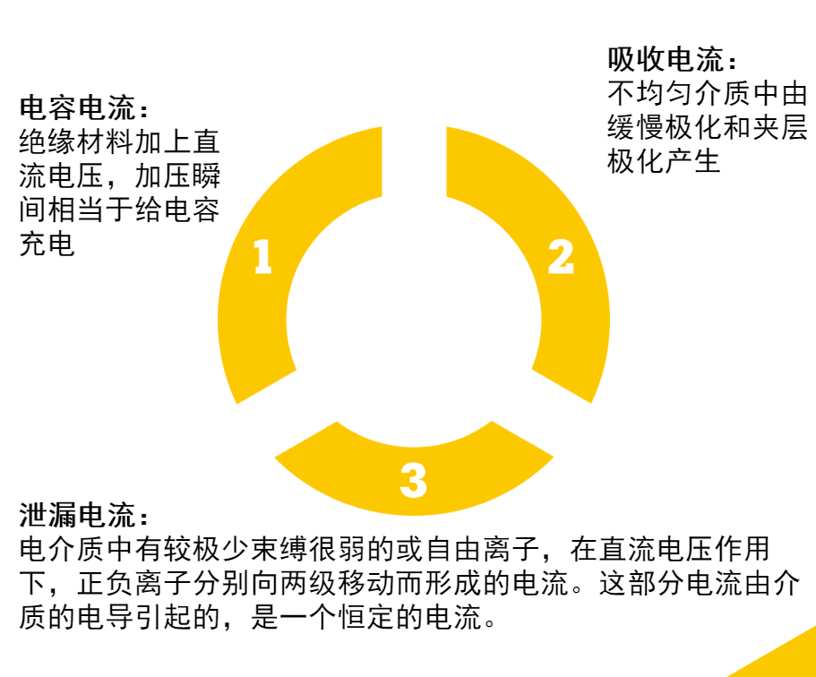 電力設備中絕緣材料(電介質(zhì))是不導電的,但并不是絕對不導電。在直流電壓作用下,電介質(zhì)中有微弱的電流流過。電介質(zhì)材料的性質(zhì)、構(gòu)成和結(jié)構(gòu)不同。