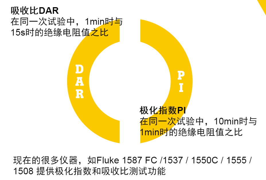 對于大容量和吸收過程較長的變壓器、發(fā)電機或電纜等,有時R60s/R15s吸收比值尚不足以反映吸收的全過程,可采用較長時間的絕緣電阻比值,即10min(R10min)和R1min(R1min)時絕緣電阻的比值,稱作絕緣的極化指數(shù)