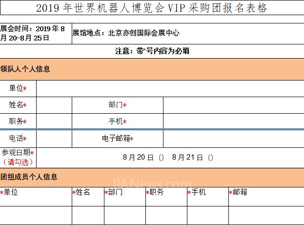 附件1:2019年世界機(jī)器人博覽會(huì)VIP采購團(tuán)報(bào)名表
