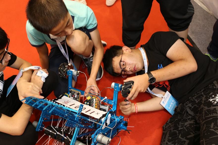 (往屆賽場上參賽選手進(jìn)行設(shè)備調(diào)試)