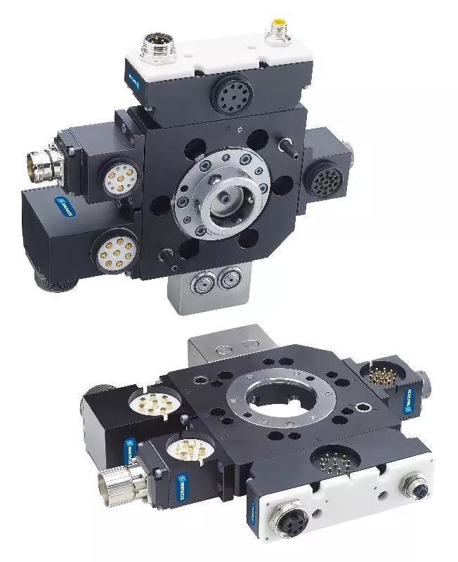 SCHUNK SWS-046 氣動(dòng)快換系統(tǒng)可快速、可靠地在機(jī)器人前端實(shí)現(xiàn)各種機(jī)械手和工具的更換。其有四種可選的模塊安裝接口,為連接氣動(dòng)、液壓或電動(dòng)執(zhí)行器提供了高功率模塊、自密封流體模塊和伺服模塊等可選項(xiàng)。另一項(xiàng)獨(dú)特的優(yōu)勢(shì)是,配備各類可連接電動(dòng)執(zhí)行器和傳感器的模塊。例如,雄克提供了 PROFIBUS、PROFINET、CAN、RS232 和 EtherNet TCP/IP 模塊,可接收來(lái)自諸如電動(dòng)機(jī)械手或力/力矩傳感器的信號(hào)。電路通道可根據(jù)應(yīng)用模塊化調(diào)節(jié)。