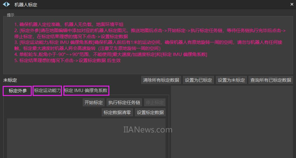4.使用本功能需要確保機器人定位準確,機器人無負載,地面環(huán)境平坦。