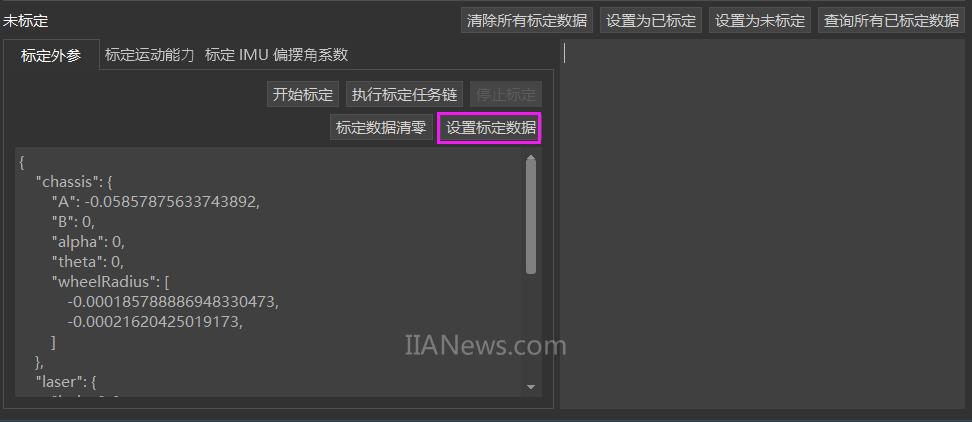【標定數(shù)據(jù)清零】:手動清除機器人中已經(jīng)存在的 【IMU偏擺角系數(shù)標定數(shù)據(jù)】,一般只在調(diào)試時使用此功能,實際使用中無需點擊該按鈕。