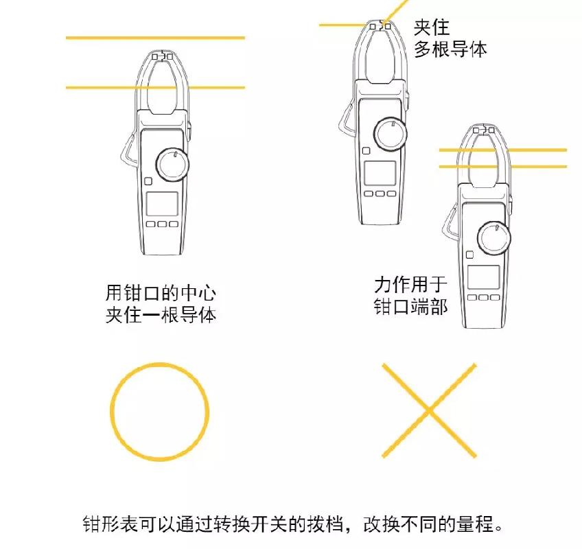 而鉗形表即開即用,不同尺寸的鉗口對(duì)應(yīng)不同尺寸的導(dǎo)線。鉗形表使用交流電磁感應(yīng)的原理,可以測量比萬用表大很多的電流,即時(shí)測量,即時(shí)讀數(shù),無需斷線,方便快捷。