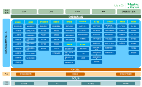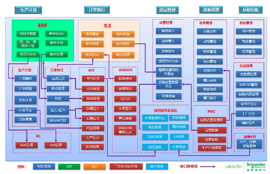 除了已有的這三大模塊和Intouch Scada軟件外,施耐德針對(duì)國(guó)內(nèi)車企特定需求進(jìn)行相關(guān)功能定制開(kāi)發(fā),最終形成了施耐德汽車行業(yè)MES解決方案。見(jiàn)下圖:
