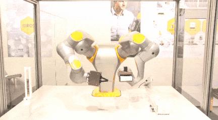 這次工博會的展示,為了更貼近工業(yè)主題,我們的雙臂機(jī)器人將模擬流水線工人的裝配,通過協(xié)作完成U盤的包裝任務(wù),抓取U盤和包裝盒,完成U盤裝盒,整個過程一氣呵成。